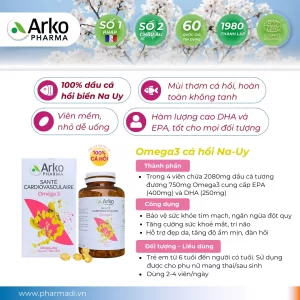 Viên uống Arkopharma Omega 3 chứa 100% dầu cá hồi từ vùng biển Na Uy – quốc gia nổi tiếng với chất lượng dầu cá hàng đầu thế giới.Sử dụng viên uống mỗi ngày giúp bổ sung vừa đủ lượng omega 3 cần thiết cho cơ thể, giúp cân bằng các chất thay vì sử dụng sản phẩm bổ sung tổng hợp Omega 3-6-9.